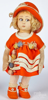 Cloth Doll; Lenci, Girl, Glancing Eyes, Swivel Head, Shirley Temple Curls, 17 inch.