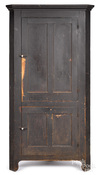 Furniture: Cupboard-Corner; American, Pine, Molded Cornice, 4 Paneled Doors.
