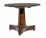 Furniture; Table-Center; Restauration, Mahogany, Circular Marble Top, Reverse Tapered Column, Tripartite Base.
