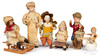 Christmas Ornament (6); Figures, Spun Cotton, Bisque Head, Various Characters.
