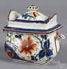Gaudy Dutch Pottery; Sunflower, Sugar Bowl & Cover, 6 inch.