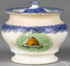 Spatterware; Beehive, Sugar Bowl & Lid, Blue, 5 inch.