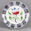 Spatterware; Tulip, Plate, Rainbow Purple & Black, 9 inch.