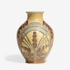 Rookwood Pottery; Hurley (Edward T), Sea Green, Vase, Herons & Full Moon, 7 inch.